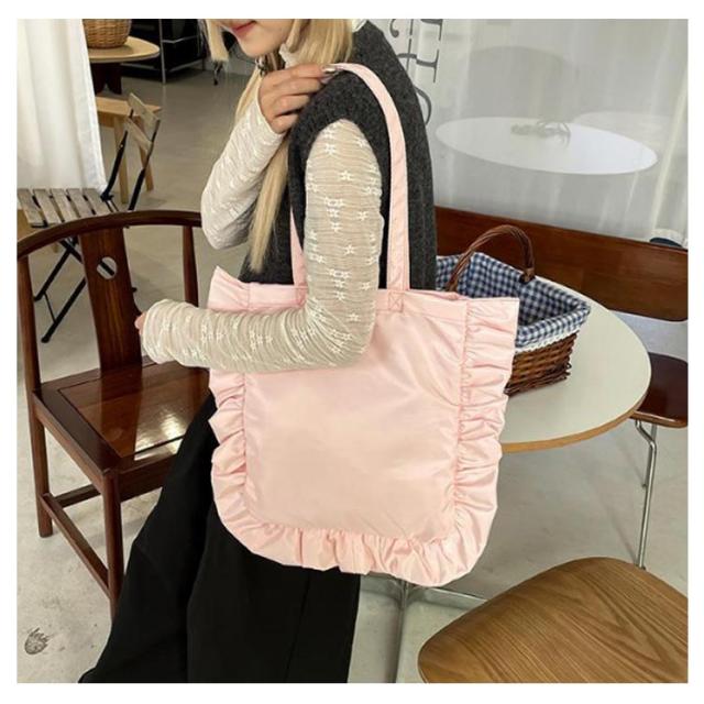 フリル トートバッグ 大きめ サブバッグ フリルトート ホワイト 通勤 カバン 縦型 フリル カジュアル ナチュラル 鞄 大容量 かばん バッグ 通学 おしゃれ 大人可愛い フリル ブラック ピンク