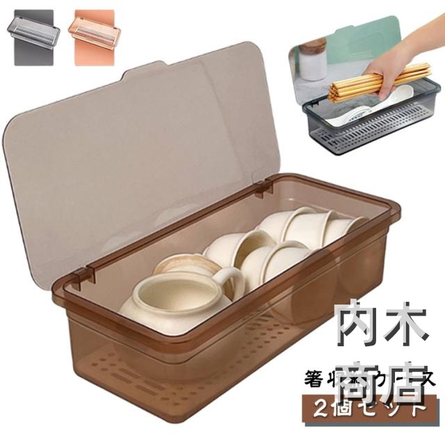 【2個セット】 お箸収納ボックス シンプル 収納ボックス 水切り板付き キッチンツール お箸 【2個セット】 箸収納ケース ナイフ 無地 整理用品 半透明 台所用品 キッチン用品 カトラリーケース 箸入れ フォーク 調理器具 スプーン