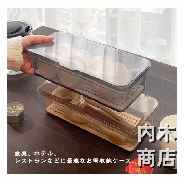 | 【2個セット】 お箸やスプーン、ナイフ、フォークなど食事の時使うカトラリーをまとめて入れておけるケースです。 水切り板付きで、乾燥しやすくて、カビ予防できます。 半透明仕様で中身が見やすく、取り出しやすいです。 蓋を閉めると、ホコリやゴミをシャットアウトできるので、おもてなし用に準備しておくのもおすすめです。 家庭、ホテル、レストランなどに最適なお箸収納ケース。 | |