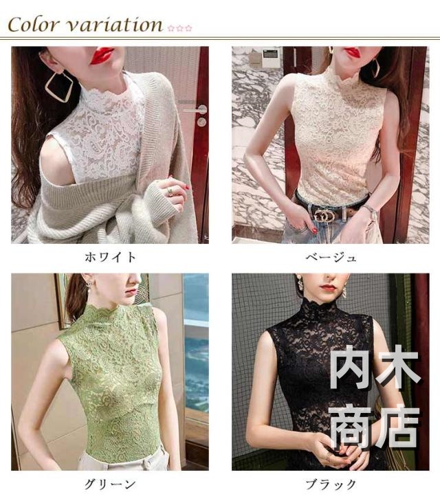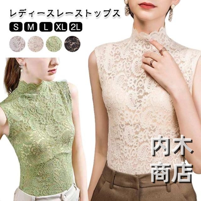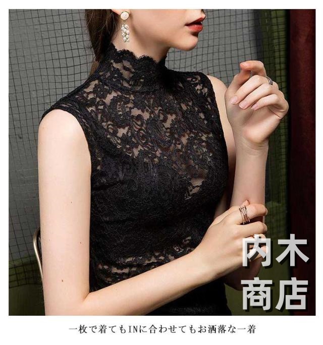 レディース 軽量仕様 家中時間充実化 ギフトにも最適 透け感 総レース トップス ブラウス タンクトップ 柔らかい ノースリーブ 伸縮性あり レース シースルー ファッション 韓国 ハイネック 着やすい 重ね着 立ち襟 きれい SNS話題 在庫わずか 花柄