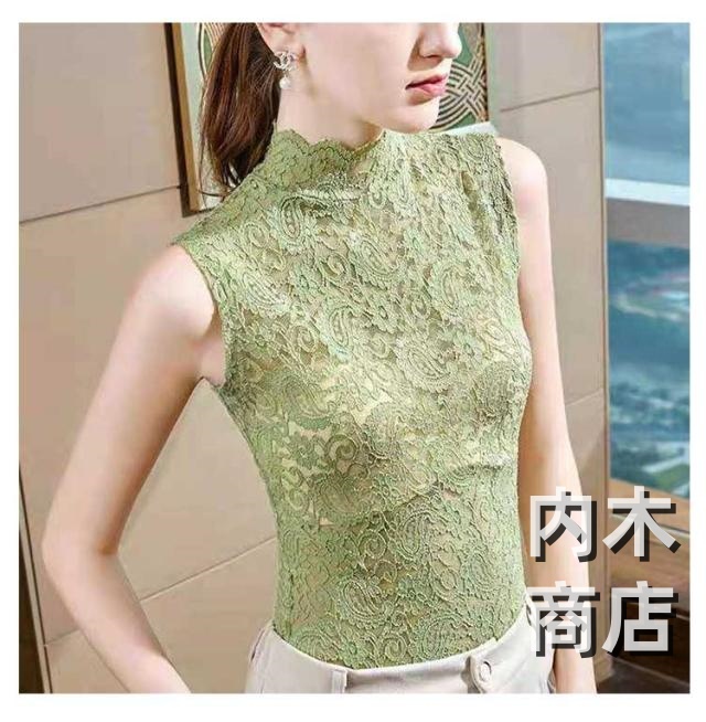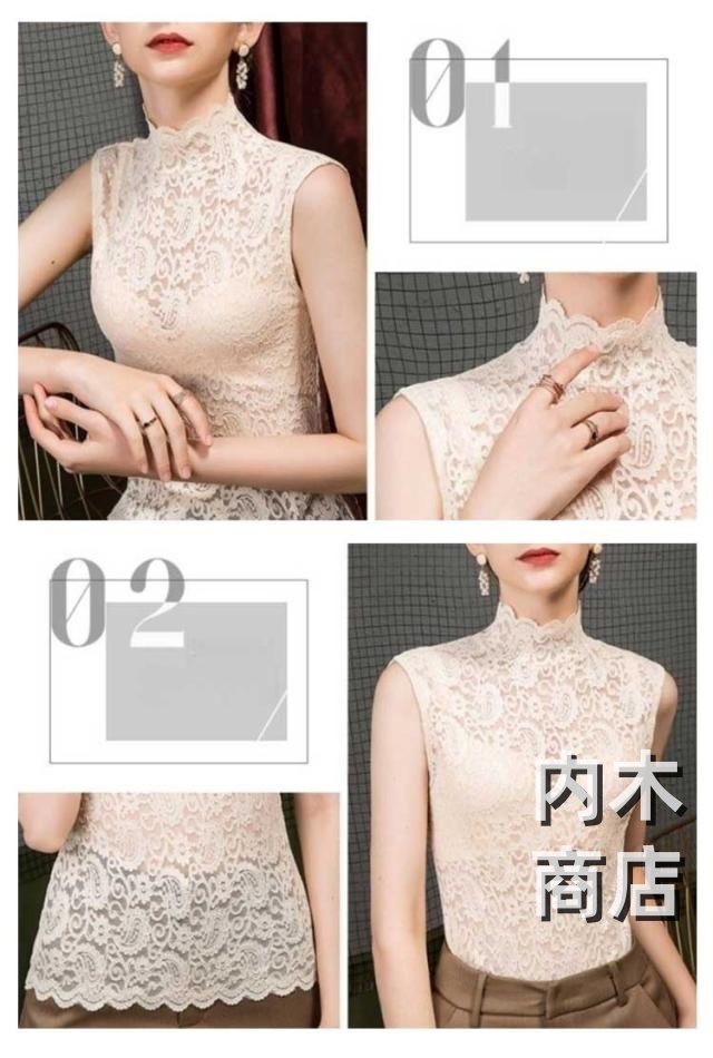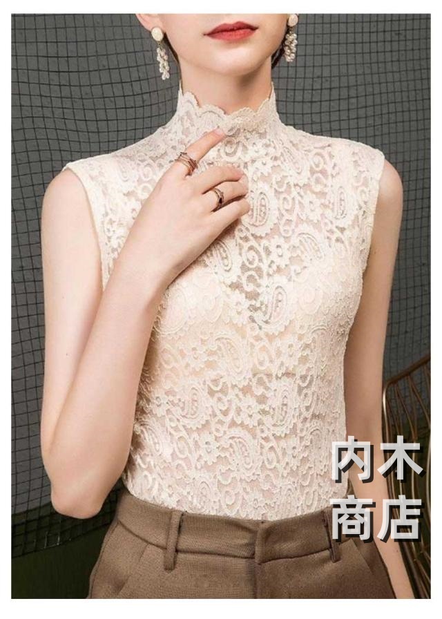 伸縮性あり きれい レディース シースルー タンクトップ 立ち襟 トップス トップス 韓国 着やすい レース ブラウス 柔らかい 花柄 レース 重ね着 ノースリーブ 透け感 ハイネック 総レース ファッション