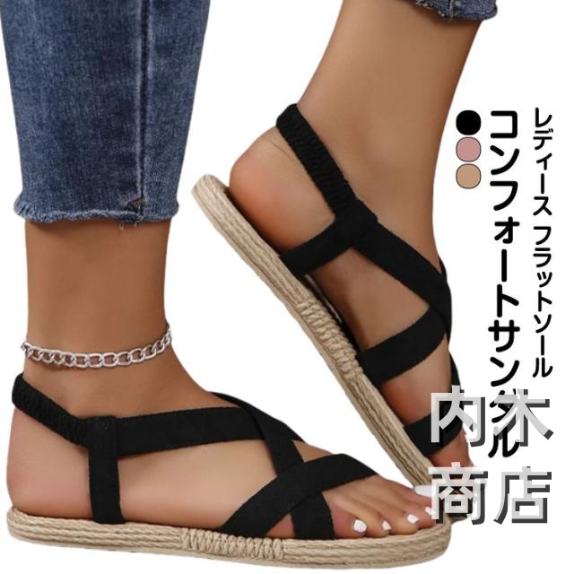 | レディース フラットソール コンフォートサンダル 旬のオシャレを楽しめるフラットサンダル。 足をしっかりホールドするクロスベルトは、歩行時に安定感があり、歩きやすい。 スポーティーなストリートスタイルにはもちろん、古着系のガーリースタイルのMIXアイテム | |