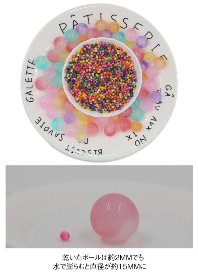 | 水で膨らむと、まるで水晶玉のように見える植育用クリスタルボールです! 土と比較して虫がわきにくく、土の代用として、観葉植物水栽培に最適! 花瓶に生ける際にも華やかに! 瓶やボトルに入れて室内インテリアとしても◎ 使い方が様々な便利水耕栽培用プヨプヨボールです! 乾いたボールは約2mmでも 水で膨らむと直径が約15mmに♪ [フレグランスとしても] 給水時に香水やお好みのフレグランスを混ぜて給水させることで フレグランスボールとしても可愛く設置できます♪ [様々なシーンで活躍] ウェディング会場やパーティーでも目を惹くインテリアにも素敵です! お好みの配色で飾り付けをしたら素敵な空間の出来上がり! [再利用可能] 使用後はよく乾燥させると次回も使用可能です。 次のパーティー・イベントなどの飾り付けとして再利用も可能です。 | |