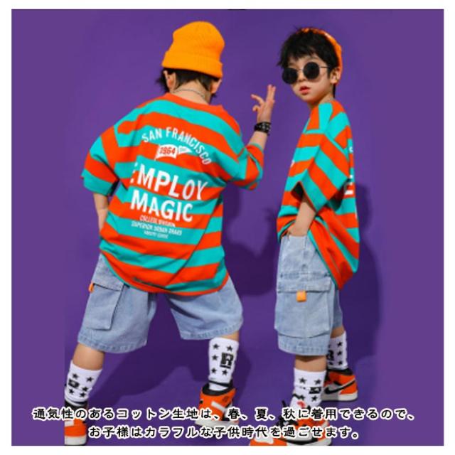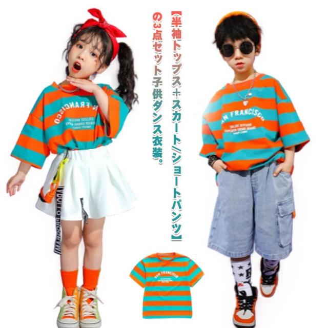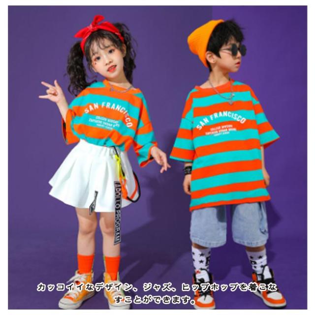 ダンス衣装 女の子 キッズ tシャツ 子供 男の子 練習着 子供服 ダンス衣装 ダンス セットアップ 韓国 キッズ 半袖 トップス デニムパンツ スカート 白 ショートパンツ ボーダー柄 ダンスウェア 体操服 チア チアガール 演出服