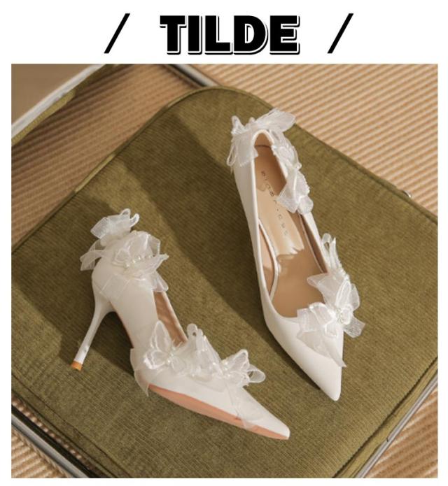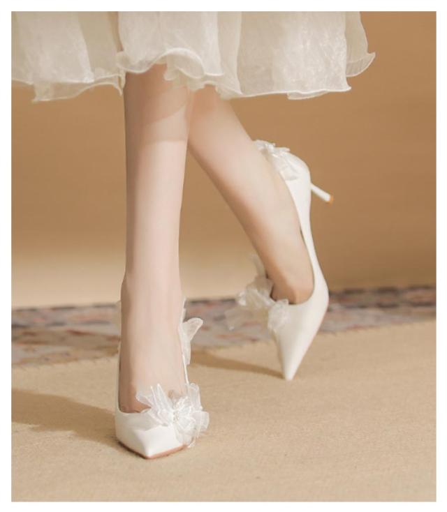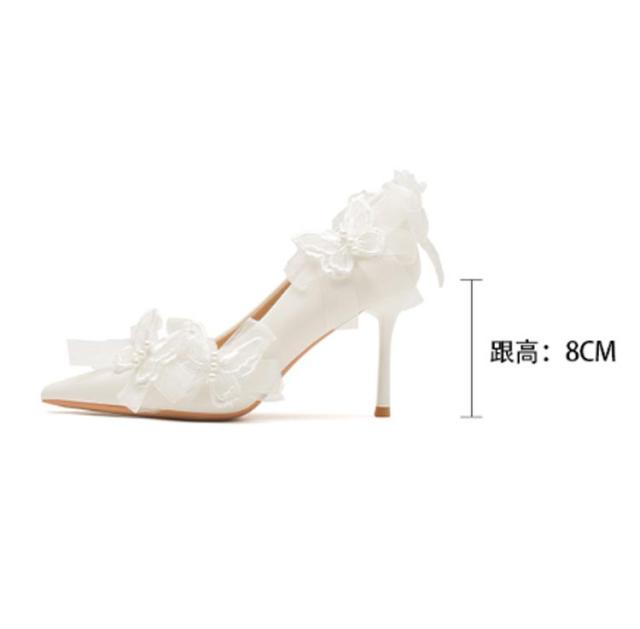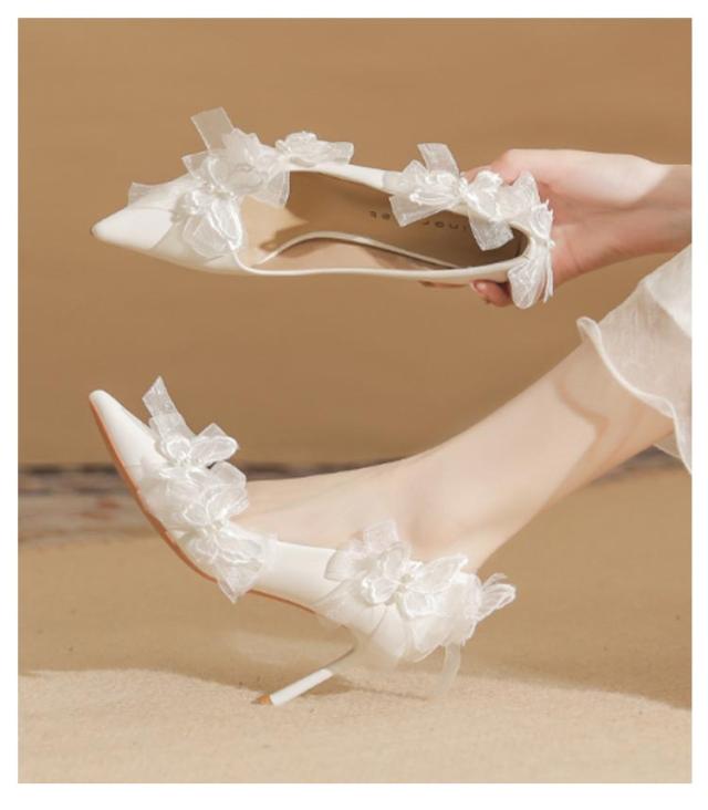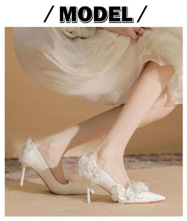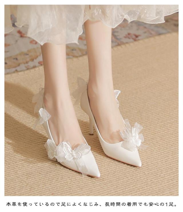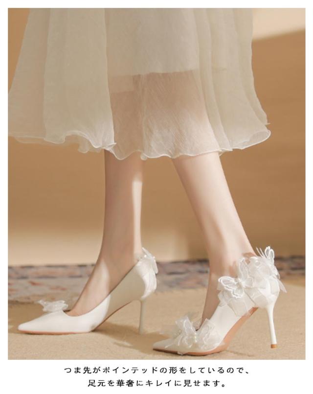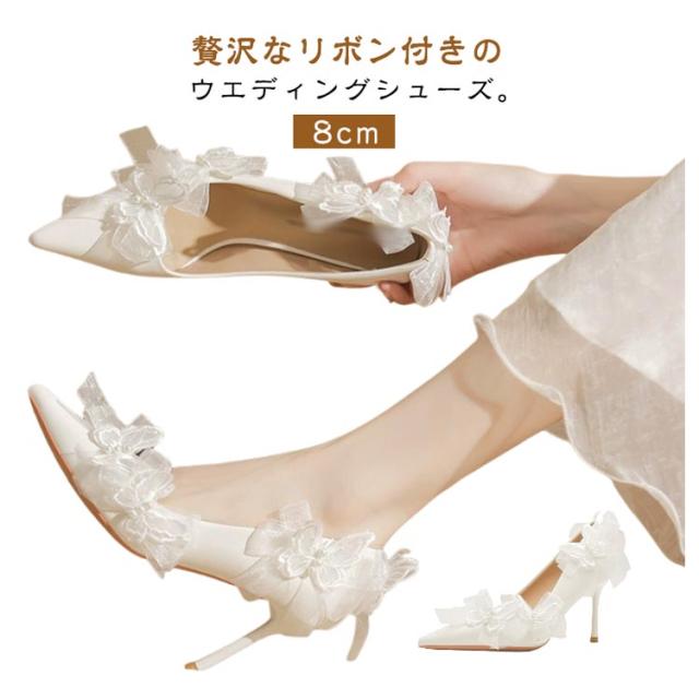 ブライダルシューズ ウエディングシューズ リボン付き パンプス 8cmヒール エレガント 花嫁 シューズ 結婚式 ブライダルシューズ 韓国風 本革 ドレスシューズ 痛くない ブライダル ウエディング 靴 優雅 疲れない 滑り止め 挙式 披露宴 発表会 演奏会 パーティー 純白