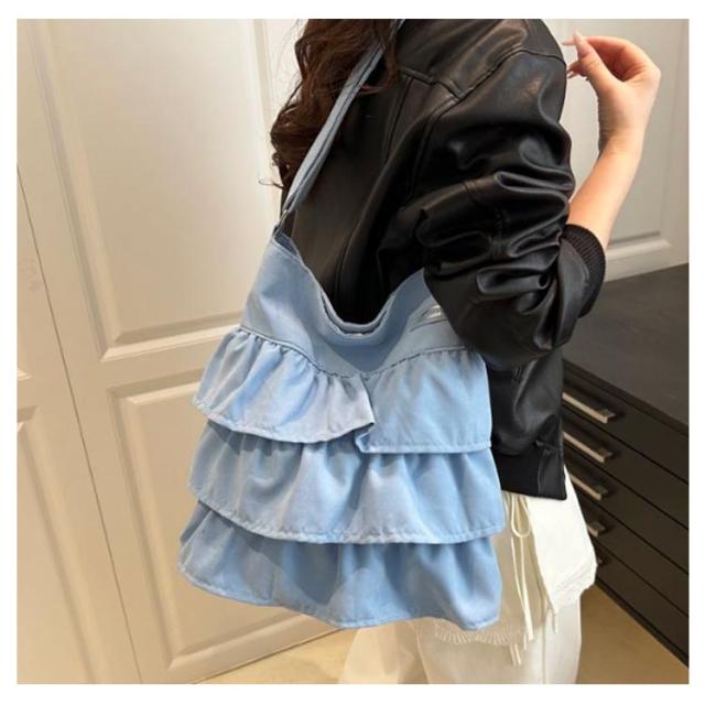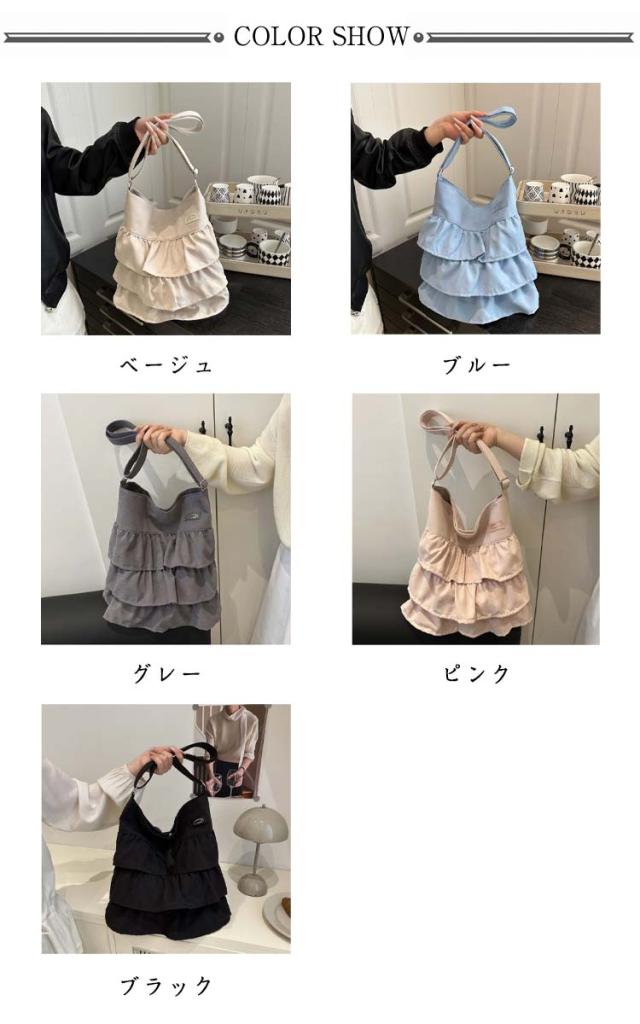 フリル 折りたたみ フリルバッグ フリル ワンショルダー 肩掛け バッグ ティアードバッグ トート フリル A4 フリル エコバッグ フリルトート コンパクト 簡単 可愛い レディースバッグ 大きめ ベージュ ブルー グレー ピンク