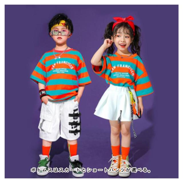キッズ 男の子 ダンス衣装 子供服 女の子 ダンス ショートパンツ 子供 ダンス衣装 練習着 セットアップ 韓国 tシャツ 半袖 トップス デニムパンツ スカート キッズ 白 ボーダー柄 ダンスウェア 体操服 チア チアガール 演出服