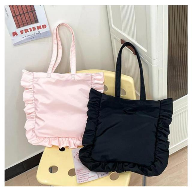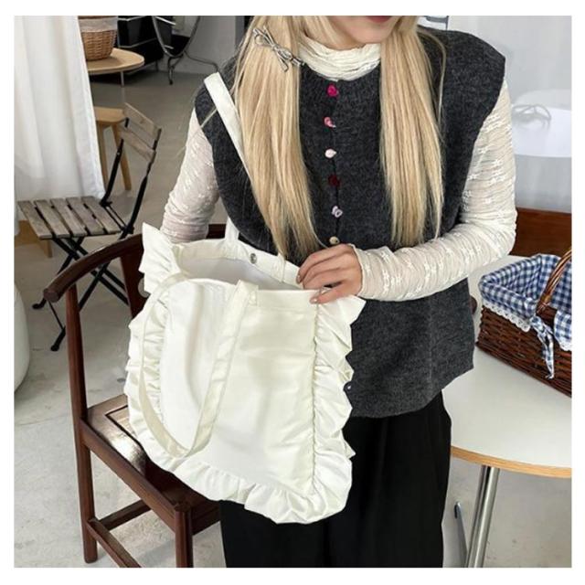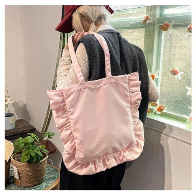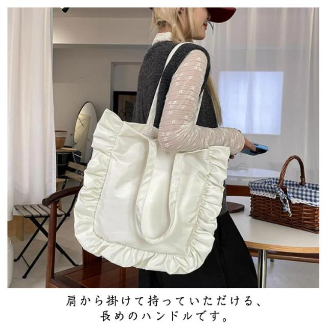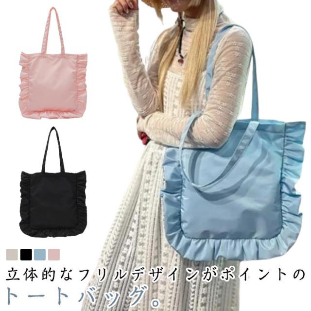 ナチュラル 通勤 フリル 大容量 サブバッグ フリル バッグ 大きめ カバン フリル カジュアル 縦型 鞄 肩掛け かばん フリルトート 通学 おしゃれ 大人可愛い ホワイト ブラック ピンク