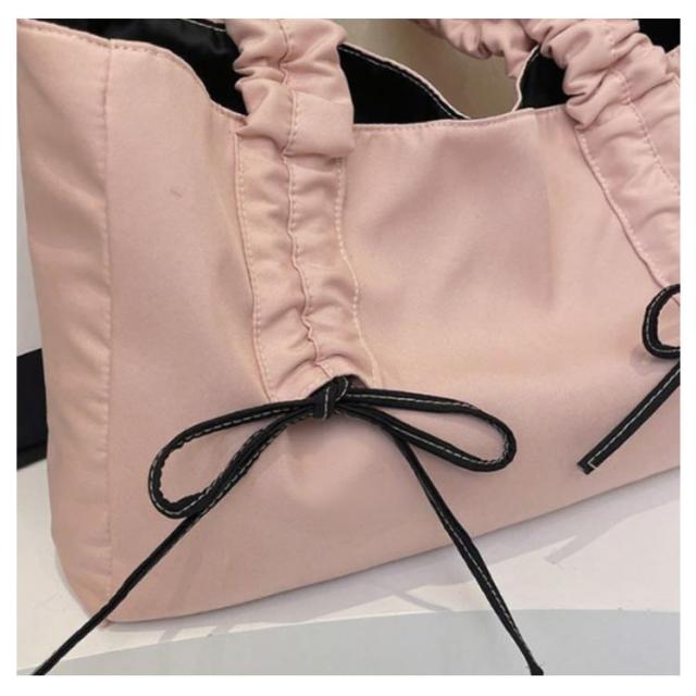 フリルハンドル かばん トートバッグ バッグ レディース 鞄 スクエア 大きめ きれいめ ギャザーバッグ A4 リボン トートバッグ フリルハンドル マチあり バッグ 通学 ハンドバッグ 大人 可愛い おしゃれ 肩掛け 肩がけ 無地 ブラック ベージュ ピンク