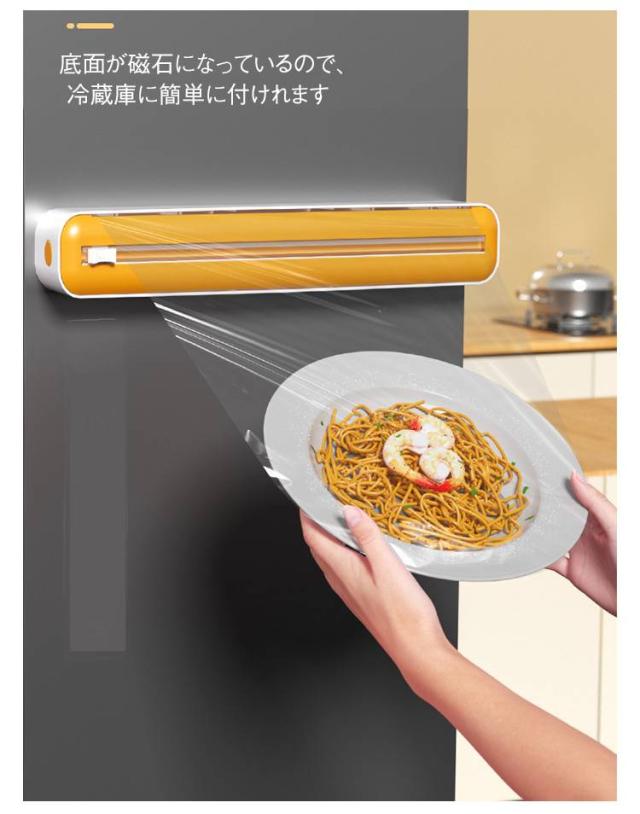 | 【吸盤+マグネット】【双方向切断】【ラップカッター】 底面が磁石になっているので、 冷蔵庫に簡単に付けれます ラップが切りにくい うまく切れない 切り口がばらばらになる くっついてなかなかはがれない こんな悩みを解決 スライダーを移動させるだけで、 両方向から片手で簡単に切れるラップカッターつきです。 両手が空くのでお皿なども簡単ラッピング。 シンプルでおしゃれな設計もキッチンにしっかり馴染みますよ 長さ30cm直径4cm以内のラップに適用 背面にマグネットつき、吸盤で装着も可能。 卓上や手持ちでの利用も対応。 ラップ以外にもクッキングシートやアルミホイルなどにも◎ | |