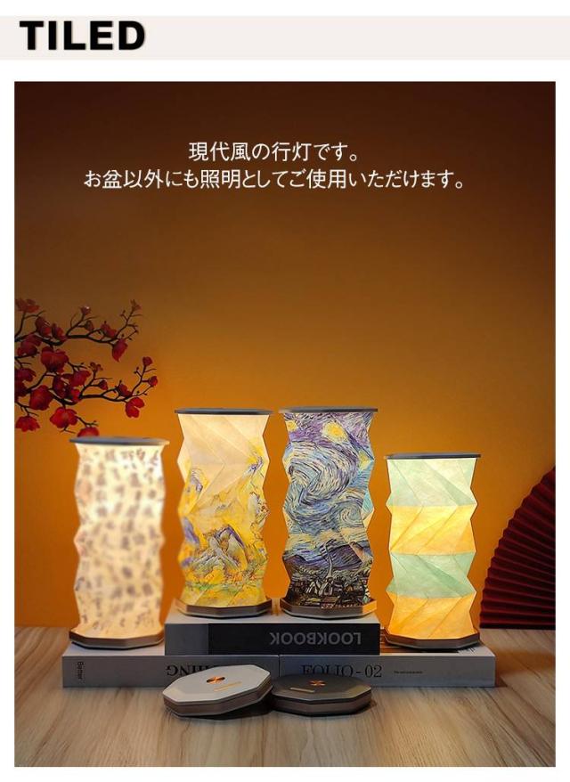 | 【高さ12cm】【type-C充電式】【盆提灯】【11種類選べる】 現代風の行灯です。お盆以外にも照明としてご使用いただけます。 type-C充電式ランプにより、コードレスでご利用いただけます。 回転折りたたみタイプのライトは、使わないときは折り畳んで収納できます。ワンタッチするだけで点灯、ワンタッチするだけで消灯、長押しで明るさを調節できます。 初盆にもお使いいただけ、それ以降も盆提灯や普段の照明としてご利用いただけます。 | |