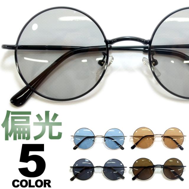 偏光サングラス 釣り スポーツ ドライブ 伊達メガネ メンズ レディース UVカット ボストン 丸メガネ ラウンド ライトカラーレンズ 薄い色 アジアンフィット 全5色