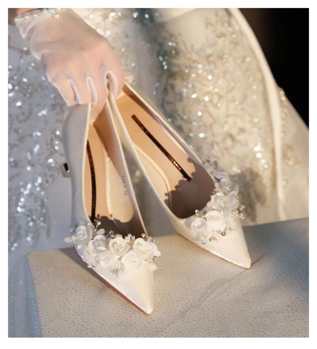 ウエディングシューズ キラキラ ポインテッドトゥ ローヒール お花付き エレガント ブライダルシューズ パンプス 疲れない 花モチーフ 韓国風 5cmヒール ドレスシューズ ウエディング シューズ 花嫁 ブライダルシューズ 靴 痛くない