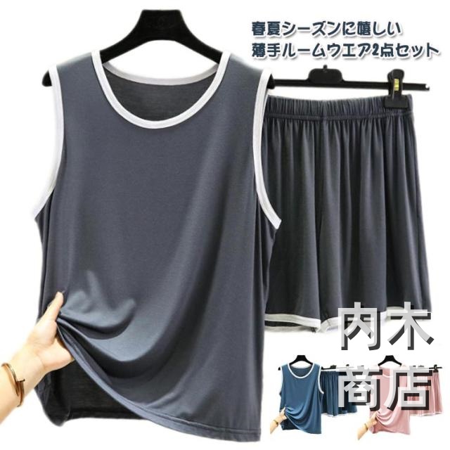 即納OK シンプル レディース SNS話題 夏 キレイめ 2点セット タンクトップ ゆったり 薄手 ナイトウエア 上下セット 無地 部屋着 寝間着 キャミソール ショートパンツ 涼しげ パジャマ ルームウエア ノースリーブ ウエストゴム セットアップ