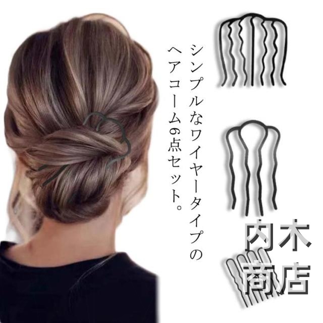 | シンプルなワイヤータイプのヘアコーム6点セット。 コームをつけたときの嫌なツッパリ感などないため、長時間付けて居られる優れものです。 ヘアアレンジの下地に最適です!! 夜会巻などのアップスタイルに♪ お団子や夜会巻き、くるりんぱ、アレンジ髪・・・バリエーションは広がります! Uピンはアレンジなどの補助にお使いくださいませ。軽くてしっかり留まります。 | |