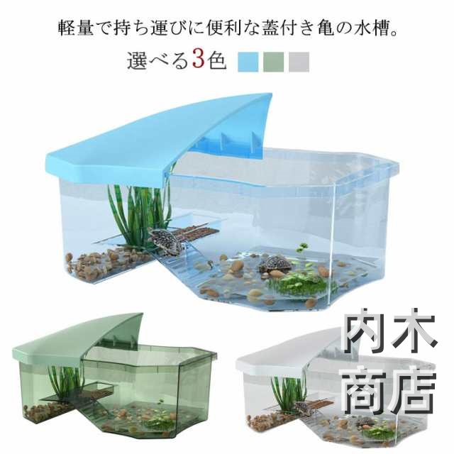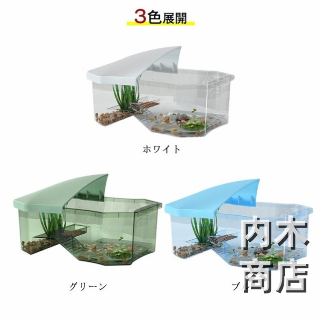 ザリガニ 日向ぼっこ台 クサガメ エサ皿 蓋付き 水槽 カメの楽園 スッポン お手入れ簡単 ケース 分離式 ミドリガメ 両生類 大きいサイズ 観察 カメ ボックス 亀の水槽 爬虫類 飼育ケース 亀 大空間