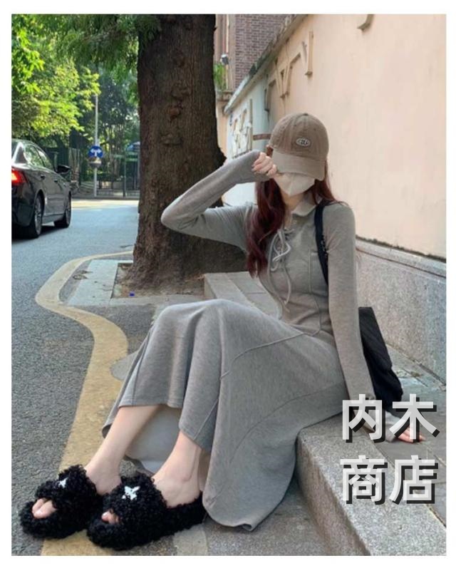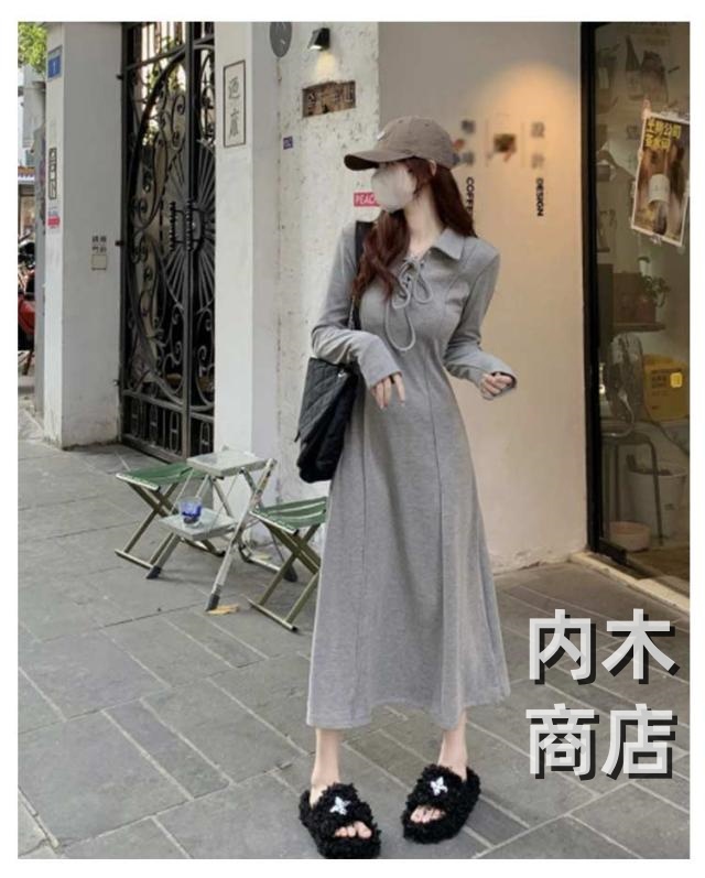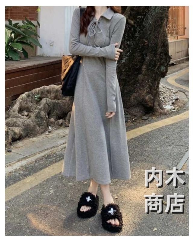 話題商品 レビュー高評価 シンプル ポロデザイン 体型カバー レディース 着痩せ ロング 厚手 長袖 襟付き カジュアル 秋冬 ワンピース 可愛い 春 裏ボア ロングワンピース キレイめ 大人 裏起毛 ポロワンピース マキシワンピース ライン ロング丈