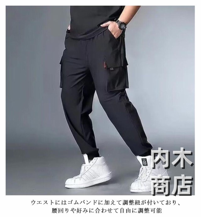 ひんやり ストレッチパンツ カジュアル 通気性 ロングパンツ 冷感パンツ 涼しい 超大きいサイズ イージーパンツ 超大きいサイズ アイスシルク 無地 -8!メンズ 接触冷感 カーゴパンツ 作業着 ジョガーパンツ 長ズボン 涼感 吸水速乾 夏 ゆったり ポケット ワークパンツ