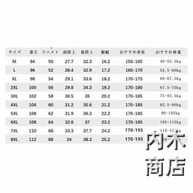 | サイズ | L XL 2XL 3XL 4XL 5XL 6XL 7XL 8XL |