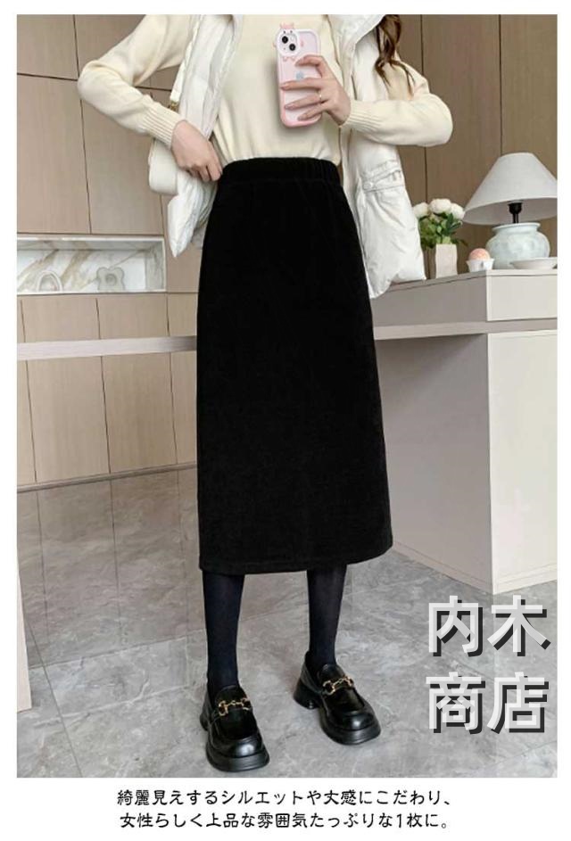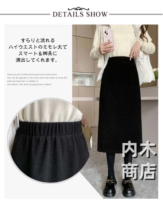 レビュー高評価 レディース 通勤 防寒 収納便利 コーデュロイスカート 膝下丈 オシャレ バックスリット ミモレスカート タイト ウエストゴム ライン 春 スカート カジュアル 秋冬 着痩せ 無地 裏起毛 裏起毛なし 在庫わずか 送料無料 冬物