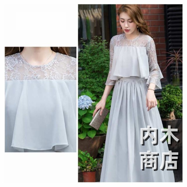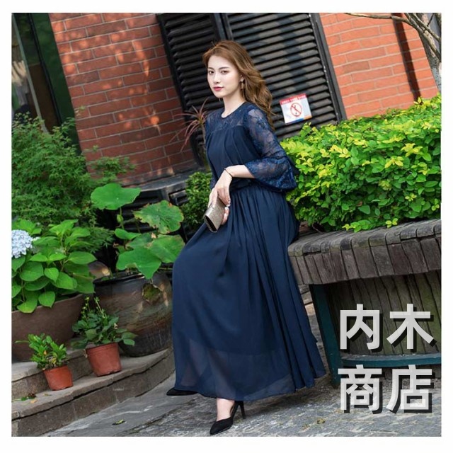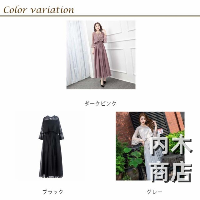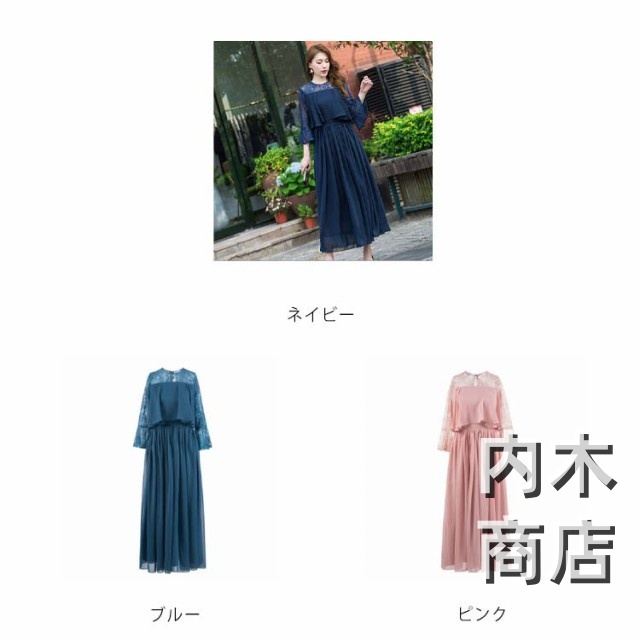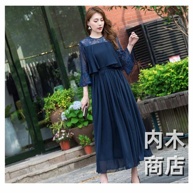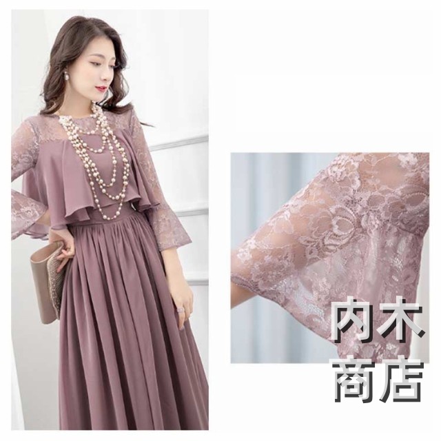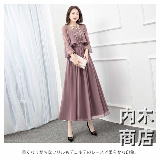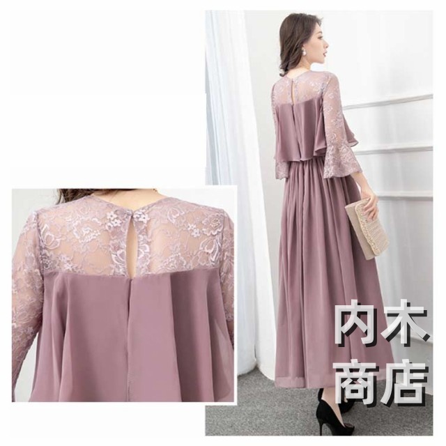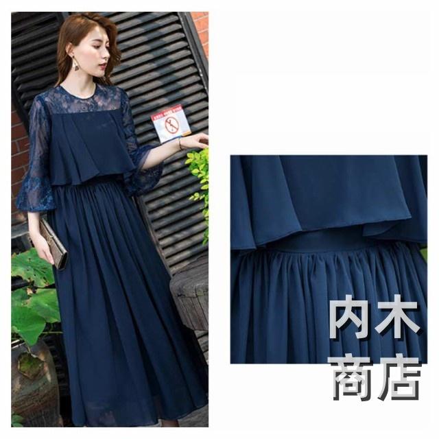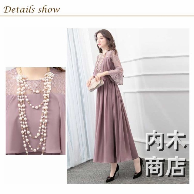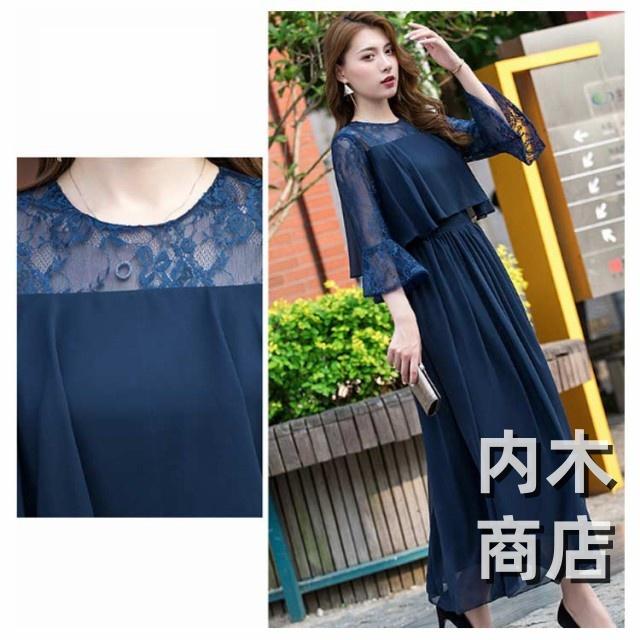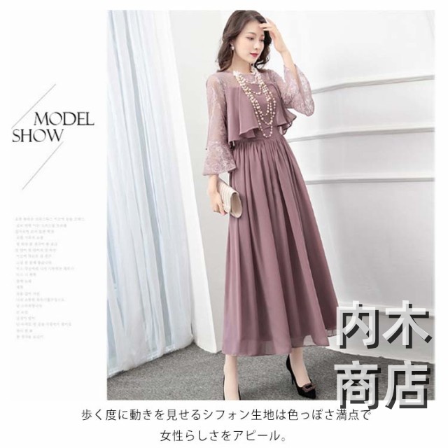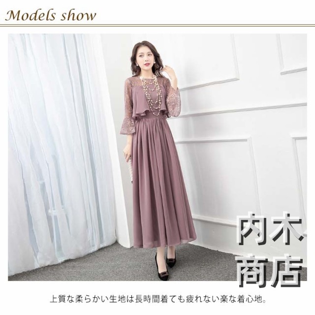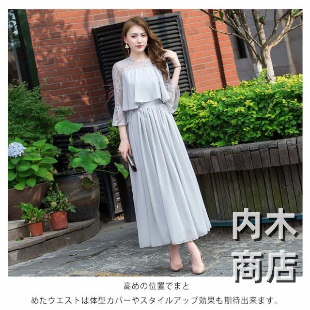 大人 袖あり パーティードレス ワンピース お呼ばれ 秋 結婚式 パーティー 夏 フォーマルワンピース 体型カバー 披露宴 巻きスカート風 -3 春 二次会 ワンピース ロング丈 6色 冬 上品 ミモレ丈 大きいサイズ ドレス レース