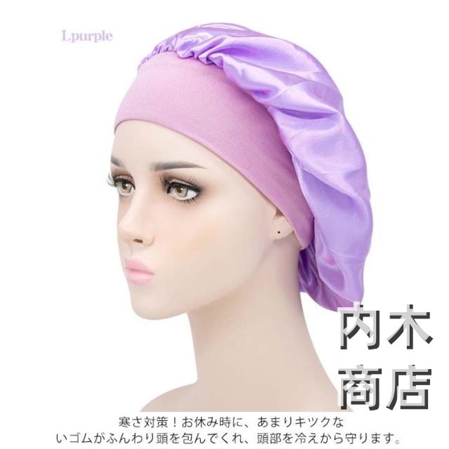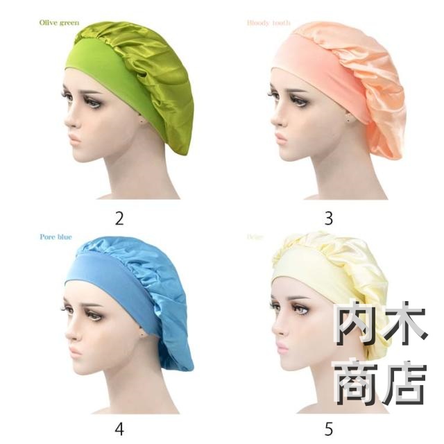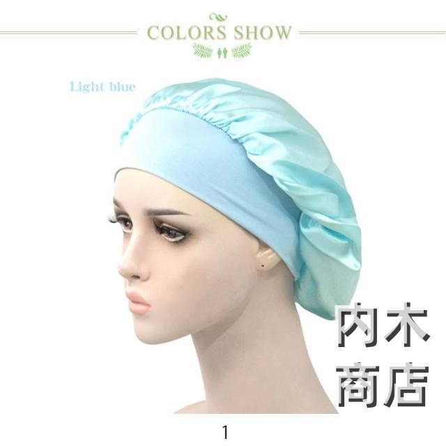| 全19色ナイトキャップ・安眠効果で健康! 髪にうるおいを与えるナイトキャップ 睡眠中の髪をしっとり保湿し、乾燥や刺激からからやさしく守ります。 気になる髪の匂いを防ぎます。寝ぐせ防止にも効果があります。 被る時は髪をすべてナイトキャップの中にいれます。 シャンプーした後にはしっかり髪を乾かしてからナイトキャップを被るようにしてください。 寒さ対策!お休み時に、あまりキツクないゴムがふんわり頭を包んでくれ、頭部を冷えから守ります。 就寝中の髪の毛のもつれを防ぐのにも効果的です。 寝癖悩み解消!アレルギーの原因ともなるホコリを寄せ付けにくく抗菌性にも優れているので、衛生的にも安心してお使いいただけます。 豊富なカラーも魅力的で洗い替えにいろんな色を選びましょう。 しかもとっても軽くてうすく涼しいのでオールシーズンかぶれるちゃいます。 | |