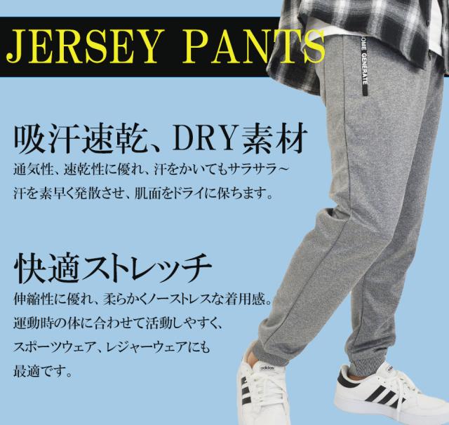 ■ポリエステルジャージ素材で耐久性に優れ、動きやすく乾きやすい、普段使いに活用しやすいジャージパンツ(トラックパンツ)。