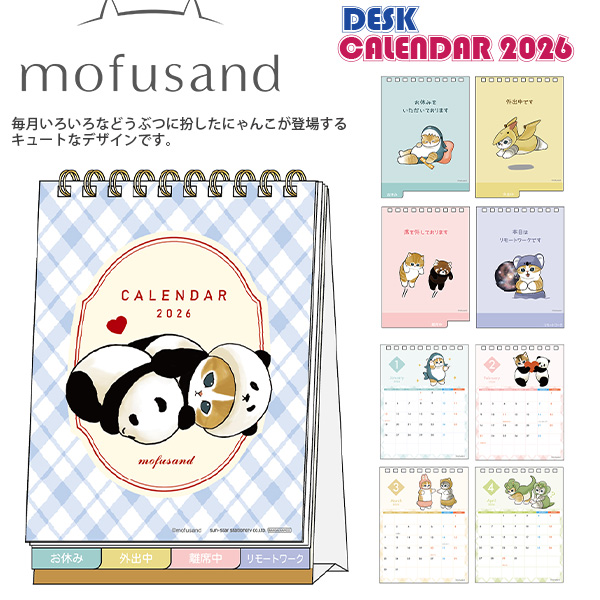 【送料無料】サンスター デスクカレンダー メッセージ付 mofusand S8521751 2026年 令和8年 モフサンド ねこ ネコ 猫 メッセージカード付き 卓上カレンダー デスク用カレンダー 月めくりカレンダー コンパクトカレンダー かわいい