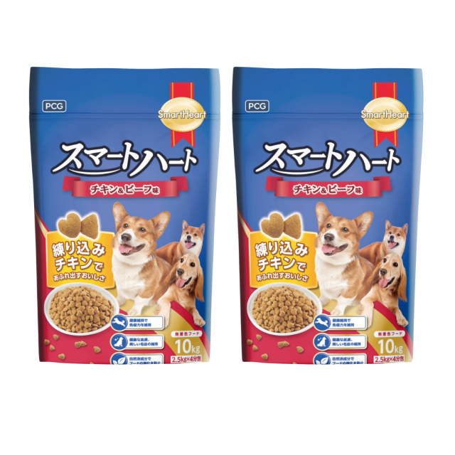スマートハート チキン&ビーフ味 チキン&緑黄色野菜味 10kg×2袋セット ドッグフード オールステージ 総合栄養食 ドライフード 無着色 分包タイプ 大容量 お徳用 まとめ売り 多頭 多頭飼い 子犬 仔犬 成犬 高齢犬 シニア犬