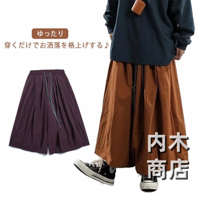 ユニセックス タックパンツ パンツ ワイド ビッグシルエット フレア メンズ ガウチョ レディース バルーンパンツ サルエルパンツ 大きいサイズ フレアパンツ 袴パンツ ゆったり アジアンパンツ スカンツ ウェストゴム 春服 袴 スカンツ