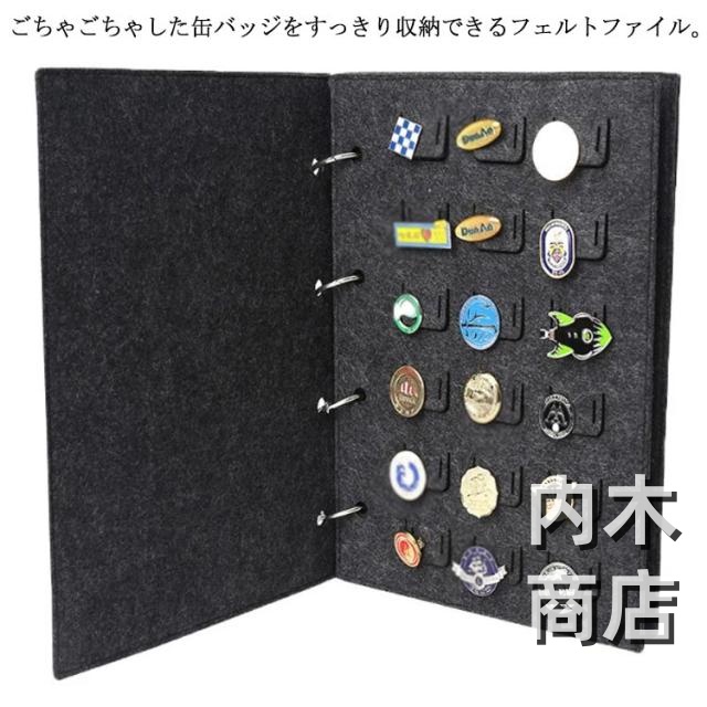 | ごちゃごちゃした缶バッジをすっきり収納できるフェルトファイル。 表面がフェルト素材で大切な缶バッジをキズから守ります。 たっぷり収納できる4ページ。1ページあたり缶バッジを18枚収納できます。 収納部分には落下を防止するための穴付きです。 持ち運びに便利なファイル式も嬉しいポイント。 | |