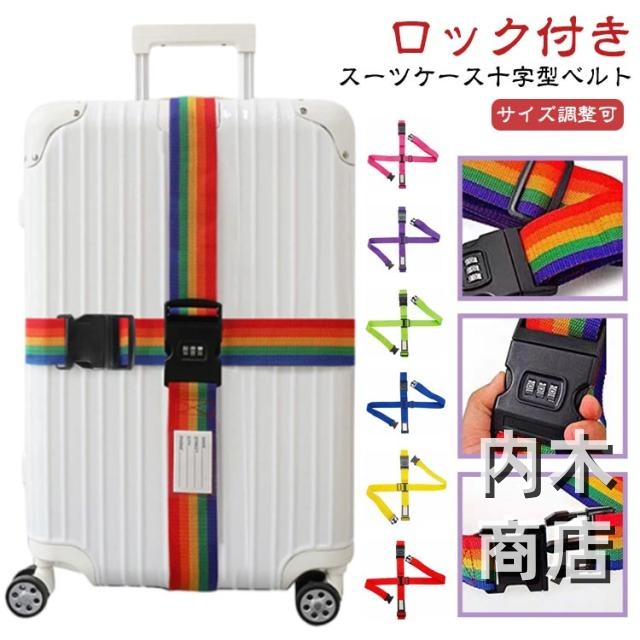 便利グッズ おしゃれ 紛失防止 ロック付きスーツケース十字型ベルト キャリーケース カラフル スーツケーストラベルベルト 飛行機グッズ ロック付きスーツケース十字型ベルト スーツケースバンド 盗難防止 サイズ調整可 旅行 スーツケースベルト