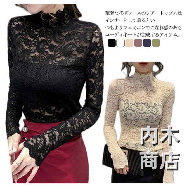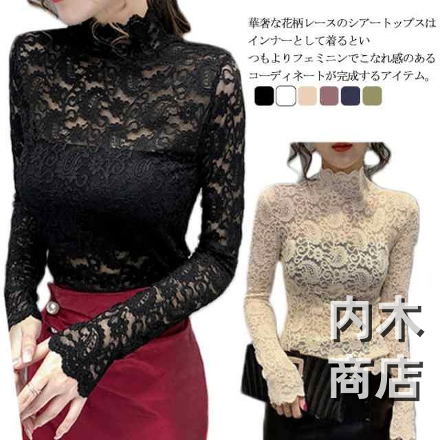 レイヤード 長袖シャツ 30 大人 きれいめ 春夏秋冬 代 薄手 インナー 透け感 50 40 ハイネック 重ね着 シアートップス シースルー セクシー コーデ 20 レース 送料無料 おしゃれ レディース 長袖