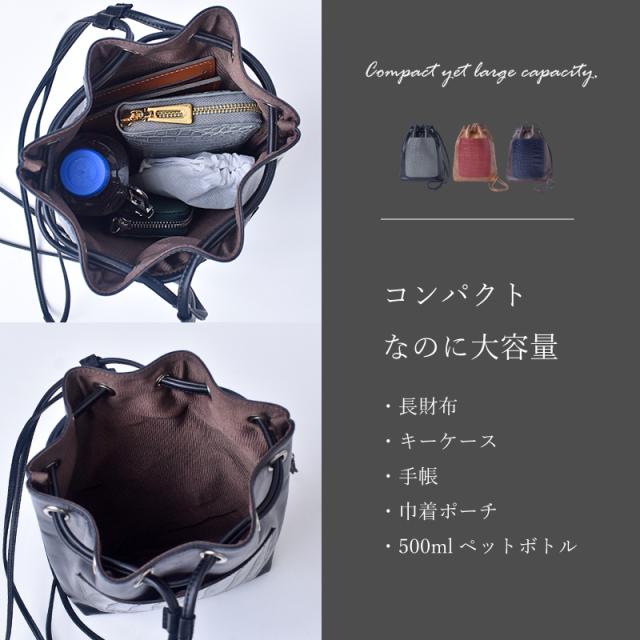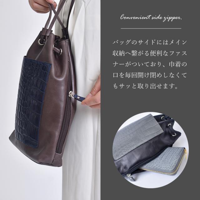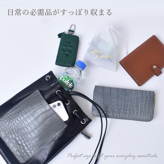 いつもの装いを格上げする、大人の本革巾着バッグが新登場! 【永く愛せる、上質な本革バッグ】 「バッグはいつも同じものを選んでしまう」「もう少し自分らしいものを見つけたい」とお考えの方へ。 このバッグは、大人の女性が求める「上品な高見え」と「こなれ感」を両立させました。 【シンプルながらも洗練されたデザイン 】 流行に左右されず、時を超えて愛用できる逸品。 あなたのスタイルをさりげなく格上げしてくれる、「永く使えるバッグ」です。 【唯一無二の異素材コンビ】 ・クロコダイル クロコダイル本革は、希少性と美しい斑模様が何よりの魅力。 一つとして同じものはない、天然の模様が放つ存在感は、あなたのスタイルをワンランク上へと導きます。 ・牛革 牛革はしっとりと手に馴染む、きめ細やかな質感。 使い込むほどに艶が増し、あなただけの風合いへと育っていきます。 「いいもの」を持つ喜びを感じられます。 【試験証明】 お客様に安心してご購入いただけるよう、MGSABLE では本革の証明試験を行っております。 【日常の必需品がすっぽり収まる】 コンパクトな見た目とは裏腹に、驚くほどたっぷり収納できます。 長財布、500mlのペットボトル、キーケース、ポーチ、そして手帳まで、普段持ち歩きたいものがこれ一つに収まります。 【便利なサイドファスナー】 バッグのサイドにはメイン収納へ繋がる便利なファスナーがついており、 巾着の口を毎回開け閉めしなくてもサッと取り出せます。 【自由自在にスタイルチェンジ】 2本の紐をまとめてぎゅっと絞れば、ハンドバッグ。 紐を一本ずつ肩にかけるとショルダーバッグとして使える2wayタイプ。 【本革の特性について】 当商品は、本革の風合いを最大限に活かしたなめし加工を施しております。 そのため、小さな傷がつきやすい特徴がございます。 傷はご使用いただくうちに次第に馴染み、経年変化とともに味わい深い表情へと変化します。 また、レザー専用クリームをご使用いただくことで、傷を目立ちにくくすることも可能です。 天然素材ならではの魅力を、ぜひ長くご愛用いただきながらお楽しみくださいませ。 ※本革の特性上、出荷時に小さな傷やシワが見られる場合がございます。 これらは天然素材ならではの風合いであり、不良品には該当いたしませんため、恐れ入りますがこの理由による交換・返品は承っておりません。 あらかじめご了承くださいますようお願い申し上げます。 【ラッピング承ります】 ご注文の際にラッピング希望『する』をご選択ください。 ※写真はラッピングイメージです。カラー・デザインは男女兼用の物でお包み致します。 【“革の表情”について、ご購入前にご確認ください】 本製品は牛本革を使用しておりますので、キズやシワなども入っている場合がございます。 これらは本革ならではの個体差によるものと、2つとない表情を魅せる革の個性である為、 風合いをお楽しみ頂けると幸いでございます。 |