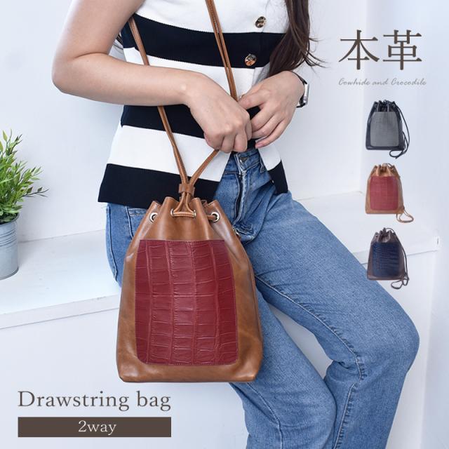 新作 巾着バッグ レディース クロコダイル 牛革 ハンドバッグ 2way 本革 ワニ革 ミニショルダー 巾着 手提げ 小さめ ポシェット ブラック ブラウン おしゃれ 肩掛け ミニバッグ 鰐革 クロコ 小さめ カバン 鞄 本皮 大人女子 女性 婦人 人気 ギフト 送料無料