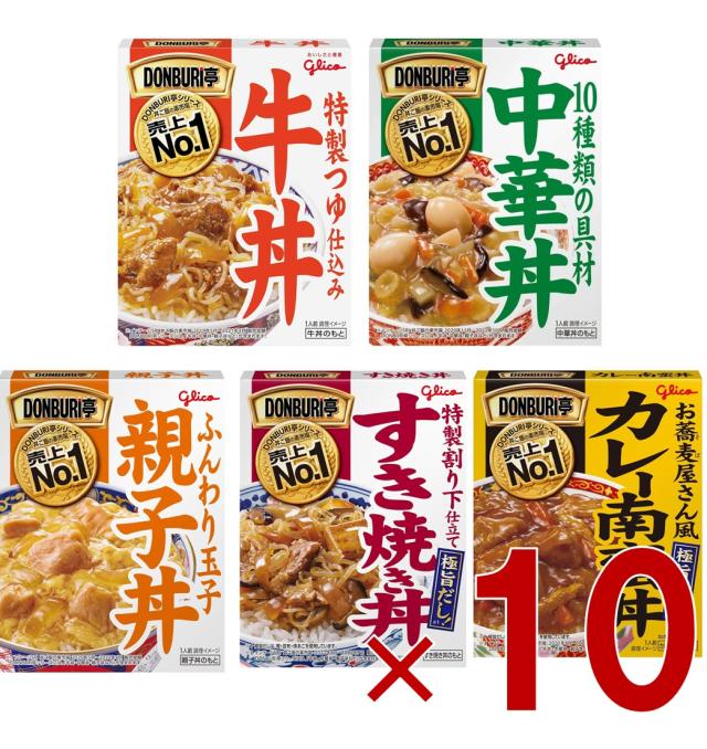 江崎グリコ DONBURI亭 どんぶり亭 牛丼 中華丼 親子丼 すき焼き丼 カレー南蛮丼 食べ比べ アソートセット レトルト レンジ 各10個