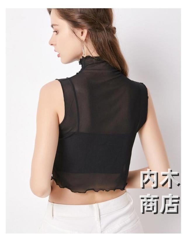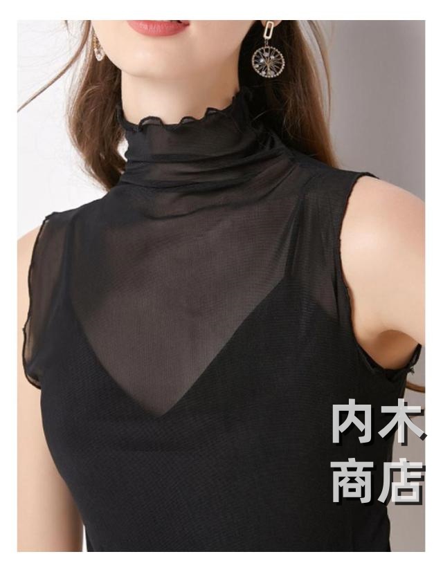 即納OK おしゃれ レディース SNS話題 紫外線対策 サマー シアートップス 2枚セット(ショート+ロング) 肌見せ レイヤード コーデ シャツ 黒 インナー 秋 ハイネック 重ね着 長袖 透け感 ノースリーブ へそ出し トップス 春夏 在庫わずか