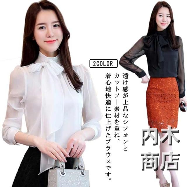 注目ランキング上位 レビュー高評価 新登場 数量限定入荷 レディース オフィス 品質安心 フォーマル 韓国 ブラウス 今だけ シフォン ハイネック ボウタイ 透け感 白 ボウタイリボン 秋 春 大きいサイズ とろみ 上品 長袖 黒