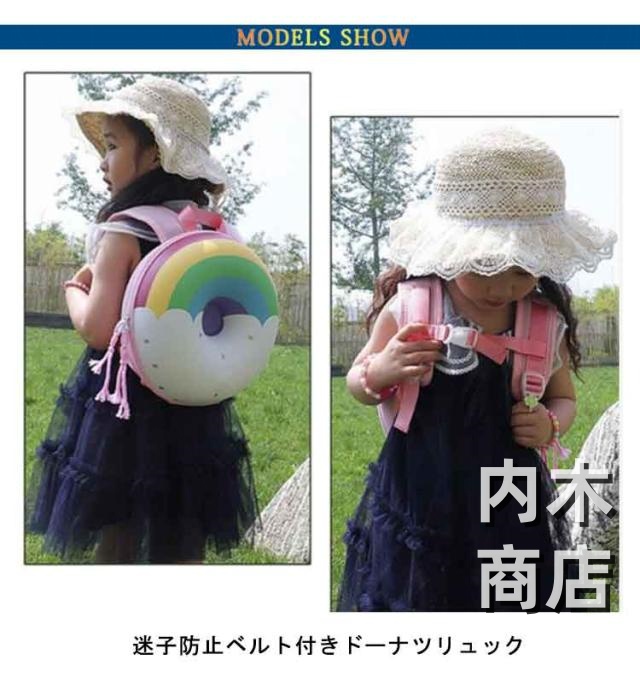 | 迷子防止ベルト付きドーナツリュック 可愛いドーナツデザイのリュックはお子様も大喜び。 肩ベルトの長さは調整することができ、ちょうどいい長さでお使いいただけます。 迷子防止ベルト付きで、公園、お散歩お買い物など、外に出ると走り回りたくなる元気なお子さまでも安心です。 迷子防止ベルトは取り外し可能なので、取り外すことで普通のリュックとしてもお使いいただけます。 お子様はもちろん、パパ・ママにも喜ばれるアイテムです。 | |