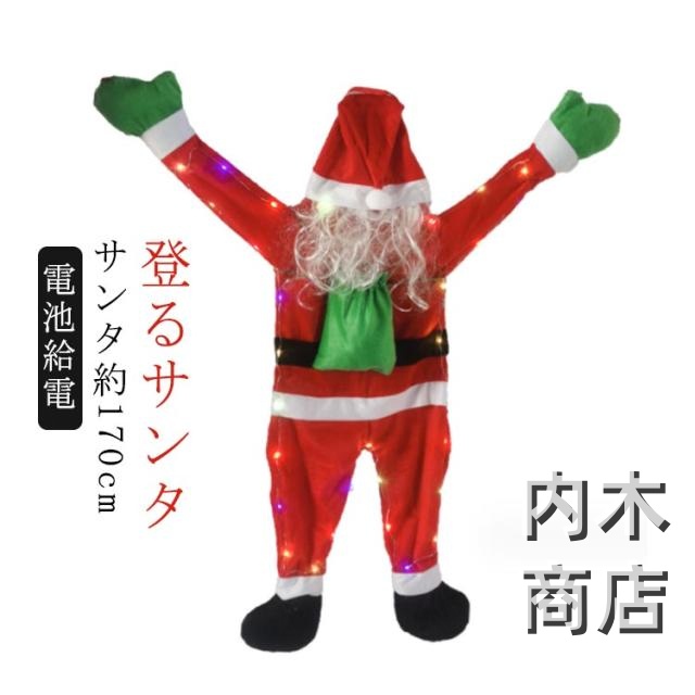 立体 ライト 人形 イルミネーションライト モチーフライト クリスマス 登る サンタ服仕様 送料無料 オーナメント クリスマスライト 屋外 サンタ クリスマス ウィンドウ 玄関 サンタクロース サンタさん 170 電飾 庭 電池式 イルミネーション クリスマス 壁飾り