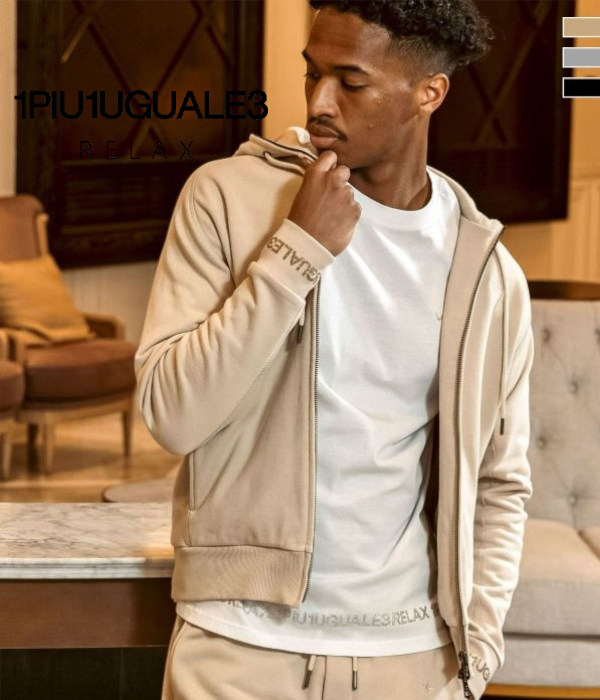 1PIU1UGUALE3 RELAX ウノピゥウノウグァーレトレ リラックス ラインストーンカフジップパーカー メンズ スウェット フーディ カジュアル スポーツ
