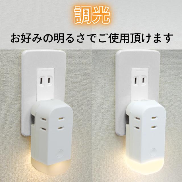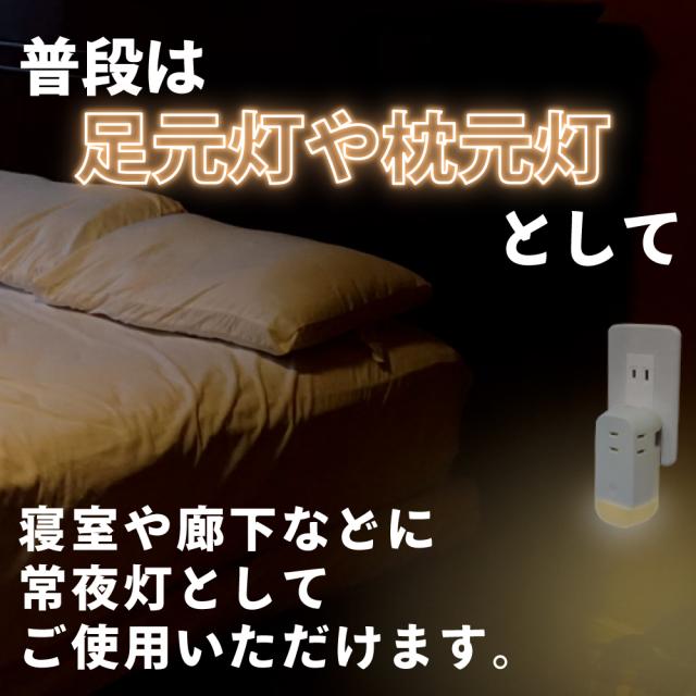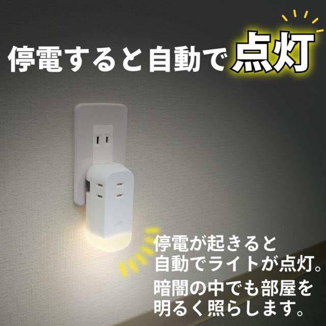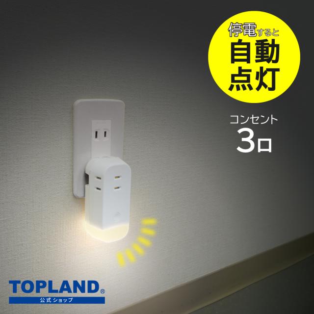 ライト付きコンセントタップ 停電 自動点灯 防災ライト 災害対策 調光 ルームライト コンセント ライト 常夜灯 非常灯 LEDライト 電源タップ 直挿しタップ タップ 3個口 M7410【トップランド 公式ショップ】