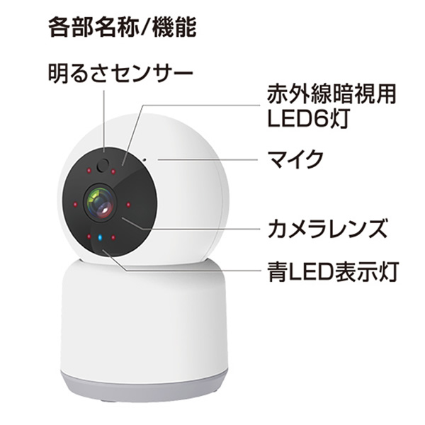 ■無線方式:無線LAN(Wi-Fi) ■準拠規格:IEEE802.11b/g/n 2.4GHz ■通信周波数帯域:2.4GHz ※5GHz非対応 ■セキュリティ: WPA/WPA2-PSK SSL/TLSによる128ビット AES 暗号化 ■動画解像度: 高解像モード(FHD):1920×1080ピクセル 低解像モード(360P):640×360ピクセル ■フレームレート:15fps(通常)、10fps(暗視) ■動画フォーマット:mp4 ■静止画解像度:1920×1080ピクセル ■静止画フォーマット:png / jpg ■イメージセンサー:1/2.9型 CMOS 200万画素 ■レンズ:F/NO:2.4; Focal Length:3.6mm ■赤外線暗視:850 nm IR LED up to 30ft ■記録媒体: スマートフォン microSD(1〜128GB)SDHCまたはSDXC ■アプリ:スマートライフ+ ■対応システム: iOS13以上のiPhone Android8以上のスマートフォン ■入力:5V 1A ■電源:5V1A以上のUSB-Aポート ■動作環境温度:0〜40℃(結露しないこと) ■付属品:USBケーブル/取付用アダプター/取付用ネジ2本/アンカー部品2本/リセット用ピン ■本体サイズ/重量:71W×112H×71Dmm / 190g ※記載は商品仕様の一部です。仕様説明不足等の理由での返品はできません。特に適合等は必ずご確認ください。