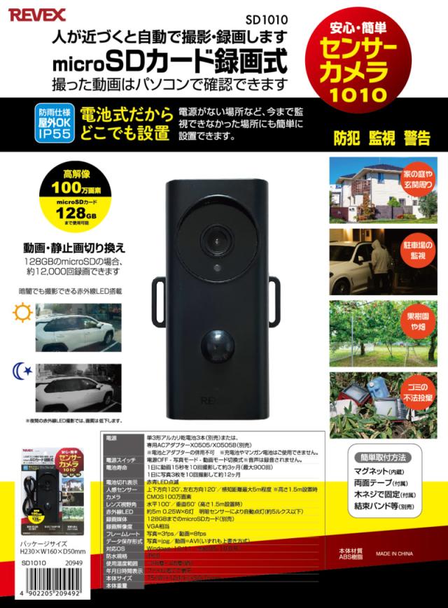 侵入者やストーカーを感知するとその場でmicroSDカードに自動録画します。 撮った画像はパソコンで確認できます。 ※対応OS:windows10/10 / MacOS10.6.8〜 ゴミの不法投棄対策に 侵入者対策に ストーカー対策に 農作物荒らし対策に 車上荒らし対策に ■電源:単3形アルカリ電池3本(別売)、又は、別売ACアダプター X0505(白1.8m)/X0505B(黒3m) ■電池寿命:動画(15秒)を1日10回録画して約3カ月(夜間撮影が多い場合は赤外線LED点灯のため短くなります) ■録画媒体:128GBまでのmicroSDカード(別売) ■カメラ:CMOS-最大100万画素 ■液晶画面:なし ■動画撮影時間:15秒 ■本体サイズ:W75×H124×奥行50mm ■本体重量:約150g(電池を含まない) ■素材・材質:ABS樹脂 ■生産国:中国 ※記載は商品仕様の一部です。仕様説明不足等の理由での返品はできません。特に適合等は必ずご確認ください。