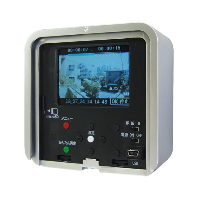 侵入者やストーカーを感知するとその場でmicroSDカードに自動録画します。 液晶画面付きなので、パソコン無しでも録画した画像を確認できます。 ※パソコンでも確認できます。(対応OS:windows7、8、10/MacOS10.6.8〜) ■本体サイズ:W10.5×H10.5×奥行5.3cm ■素材・材質:ABS樹脂 ■生産国:中国 ■電源:単3形アルカリ電池6本(別売)、又は、ACアダプター X0505(別売) ■電池寿命:動画(15秒)を1日10回録画して約3カ月(夜間撮影が多い場合は赤外線LED点灯のため短くなります。 ■録画媒体:32GBまでのmicroSDまたはmicroSDHCカード(別売) ■カメラ:CMOS-最大100万画素(3段階切り替え可能) ※記載は商品仕様の一部です。仕様説明不足等の理由での返品はできません。特に適合等は必ずご確認ください。