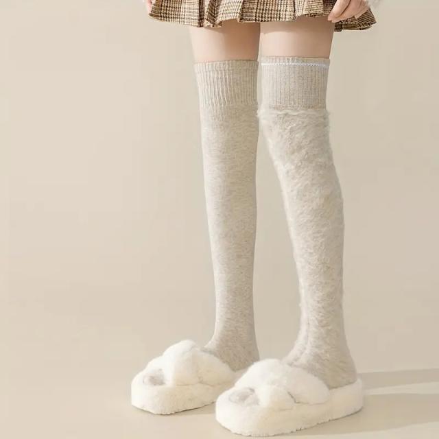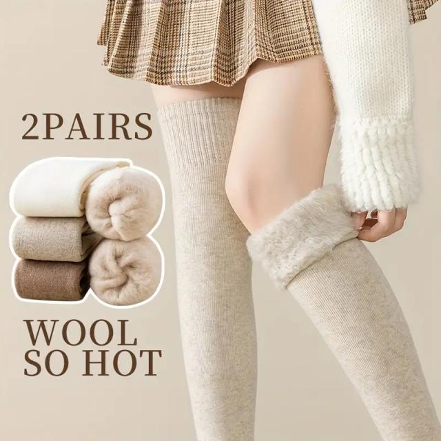 【2足セット】ニーソックス ハイニーソックス ハイソックス ソックス 靴下 レデイース 女性用 秋冬 防寒機能付き ウールフリース裏地 保温ニーハイソックス
