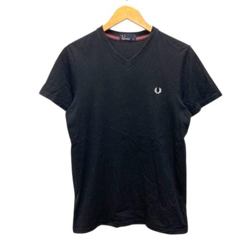 【中古】フレッドペリー FRED PERRY Tシャツ Vネック コットン ワンポイントロゴ 刺繍 半袖 XS 黒 ブラック メンズ