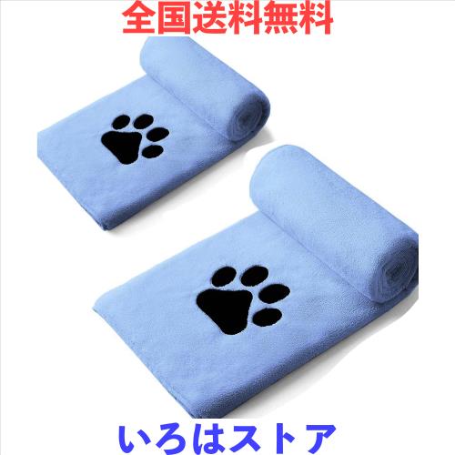 ペット用 タオル 2枚セット - バスタオル 超吸水 厚手 速乾 体拭き 犬猫兼用 快適 柔らか 40cm×80cm (小), 50cm×100cm (大)