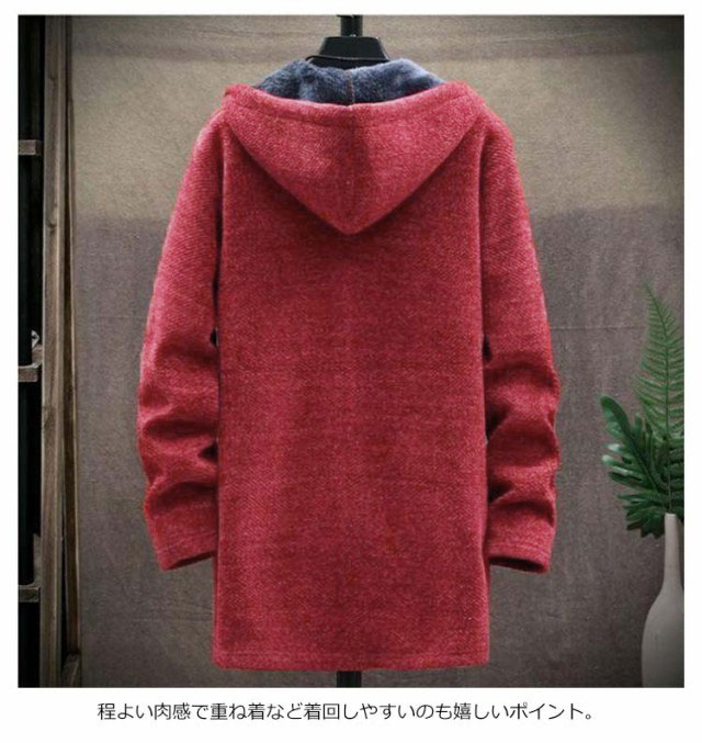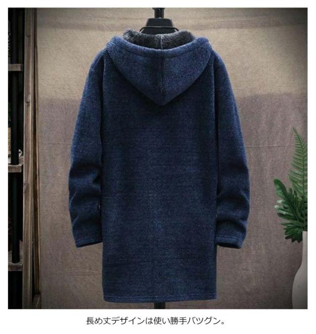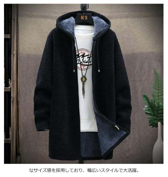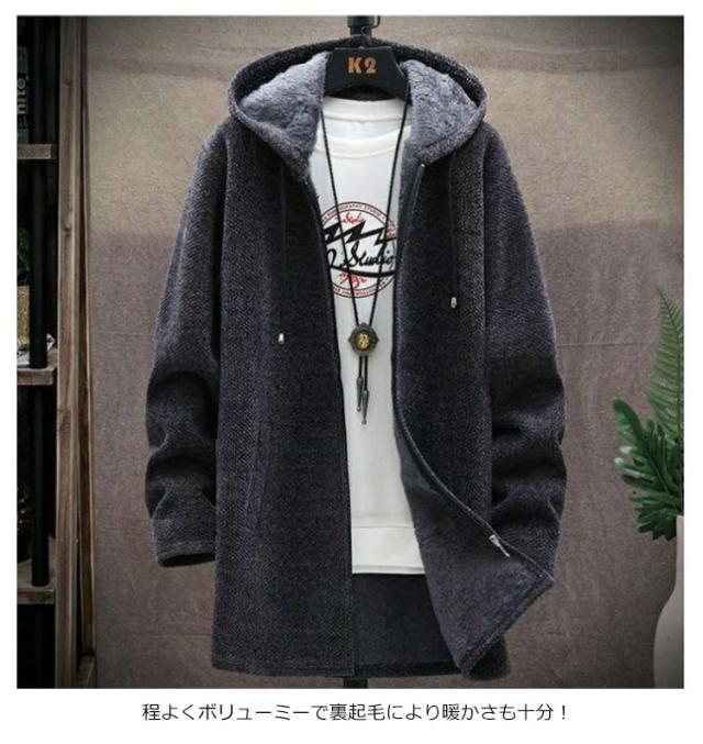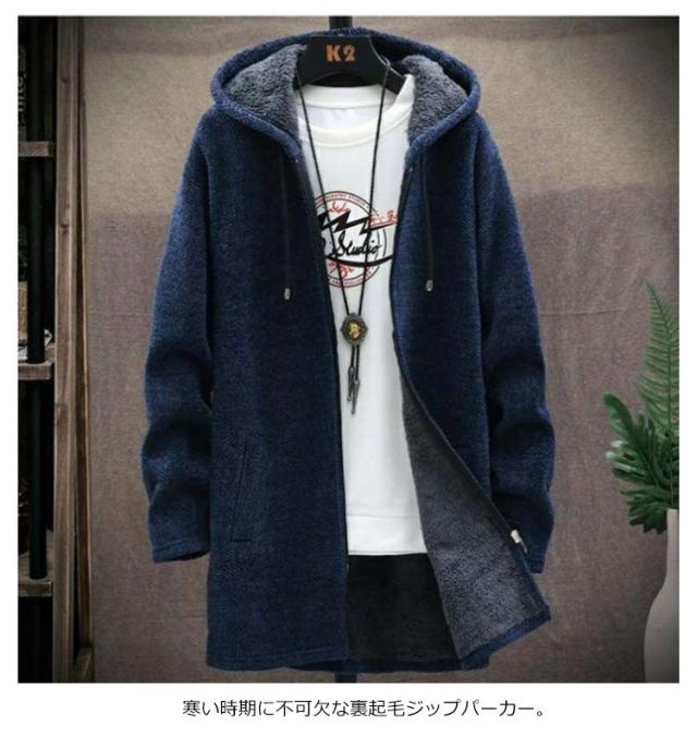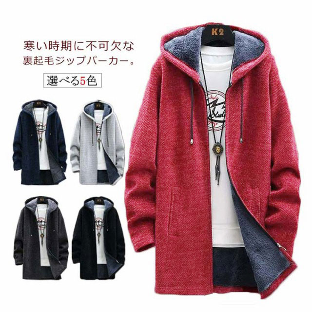 パーカー メンズ 裏起毛 ロングパーカー ジップアップ フードパーカー ロング丈 長袖 フードつき ボアフリース ジップパーカー コート アウター 上着 羽織り チェスターコート 無地 ロングカーディガン ジッパー 着痩せ 秋冬