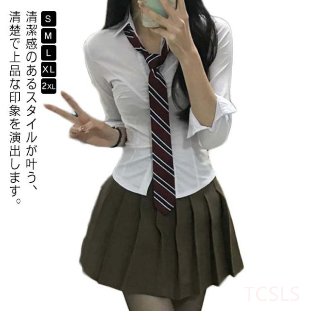 韓国 制服 可愛い セットアップ シャツ+スカート+ネクタイ グレー レディース コスプレ プリーツスカート ブレザー スクール 長袖 通学 春 秋 カジュアル 学院風 コスプレ コスチューム 3点セット ミニスカート おしゃれ 仮装 上下セット